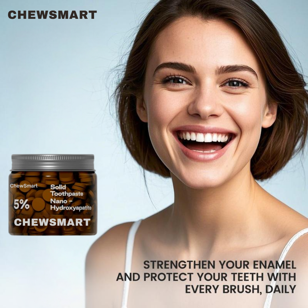 Hydroxyapatite Toothpaste Tablets are scientifically crafted to remineralize enamel, reduce tooth sensitivity, and support overall oral wellness—all without the harshness of fluoride or peroxide. Powered by 5% hydroxyapatite, these innovative tablets mimic the natural mineral composition of your teeth, helping to rebuild and strengthen enamel at a molecular level.